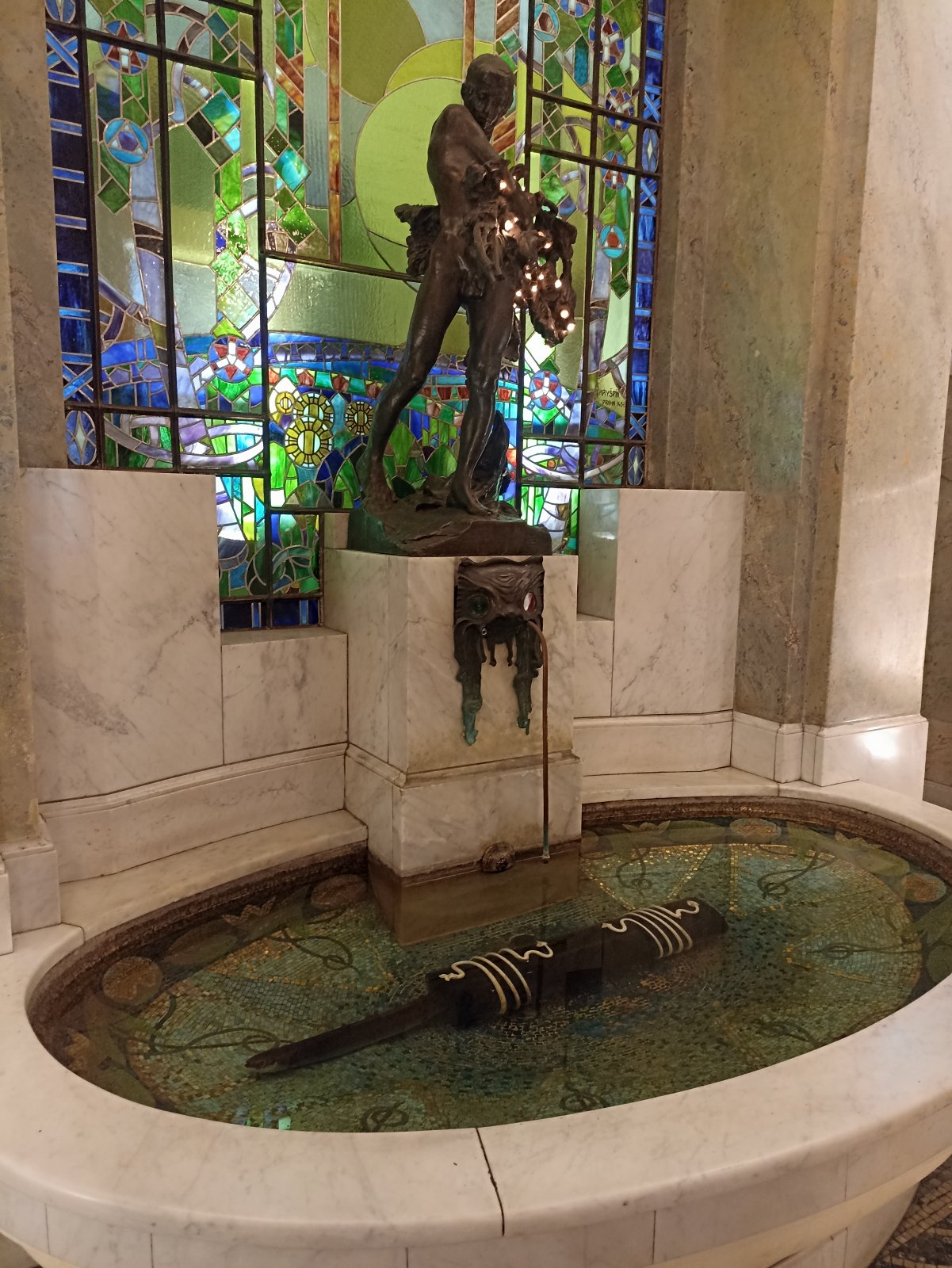 chlapec s kvetinami a vitráž za bazénikom  autor: bublinko2