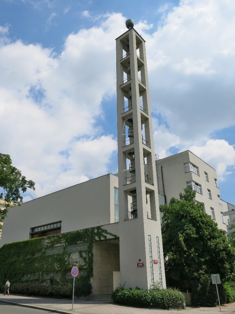 Nepřehlédnutelný konstruktivistický komplex vinohradského Husova sboru, který je považován za klenot modernistické sakrální architektury, vznikl v letech 1930 až 1935, kdy byl postaven podle návrhu architekta Pavla Janáka. Jedná se o třídílnou stavbu tvořenou modlitebnou, věží a obytným domem. Součástí komplexu je rovněž kolumbárium, které vzniklo v roce 1938 přestavbou suterénního divadelního sálu podle návrhu arch. Jiřího Jakuba. V roce 1947 k němu bylo ještě přistavěno další patro, jehož střecha tvoří terasu. Na ní se nachází vchod do předsíně modlitebny.
