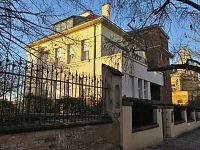 Patrovou vilu obklopuje zahrada s kamennou kašnou a je složená ze dvou částí. Její starší část je třípodlažní, nad keramikou obloženým soklem hladce omítnutá a zakončená valbovou střechou. Do severozápadního nároží je umístěna výrazná hranolová přístavba s terakotovým obkladem. Terakotou je obložená i garáž.