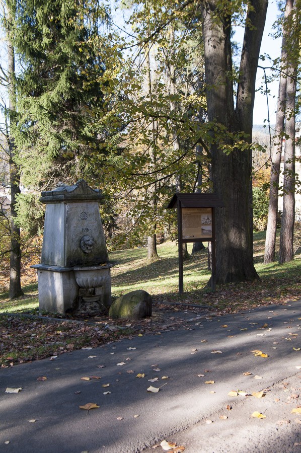 Pomníček byl o rok později přesunut na své dnešní místo ve Smetanových sadech, tehdy park Josefsgarten (nebo Raymannův park, podle majitele původní zahrady, mj. starosty Jeseníku, tehdy Frývaldova). Tehdy dostal název Sdatpark Quelle (Pramen Městského parku). Na čelní straně pod zdobeným tympanonem vidíme reliéf mušle (něco jako hřebenatka), původní chrlič ve tvaru lví hlavy byl kovový, dnes je hlava mramorová. Voda vytéká do zdobené mísy. Po rekonstrukci z r. 2010 vidíme na pomníčku letopočet 1896 a nápis Neuburský což má upomínat na partnerství s městem Neuburg nad Dunajem. Podle údajů na registru pramenů má voda teplotu 17,2 °C, vydatnost 0,9 l/min. Teplota by z něj činila téměř termální vodu, ale autor záznamu z registru se domnívá, že to může být i poměrně délkou přívodu vody do pomníčku. Pramen najdeme u jedné z hlavních cestiček v parku, nedaleko dnešní úřadovny VZP.