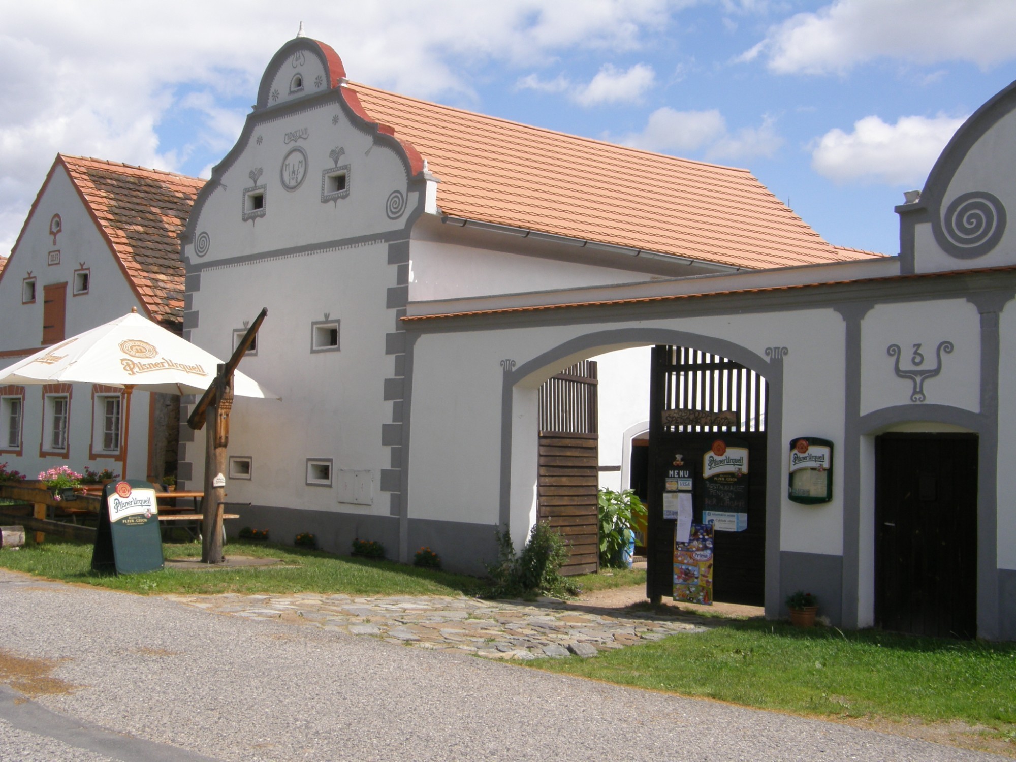 Vesnička je vlastně na kopci (výhled na atomovou elektrárnu v Temelíně zaručen!), takže zatímco v údolí řádila průtrž mračen s bouřkou, nahoře svítilo slunce. I když už bylo pozdní odpoledne, čepovali nealkoholické pivo a měli upečené jihočeské koláče. Návštěvu vřele doporučuji.