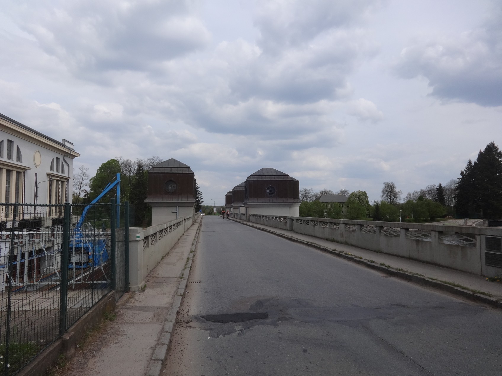 Most je široký šest metrů a vedle něho umístěné věže se střechou helmice mají šířku dva metry. Tři věže jsou na straně povodní, jedna na straně návodní. Konstrukce mostu a jezu s plavební komorou navazuje na stavbu vodní elektrárny.