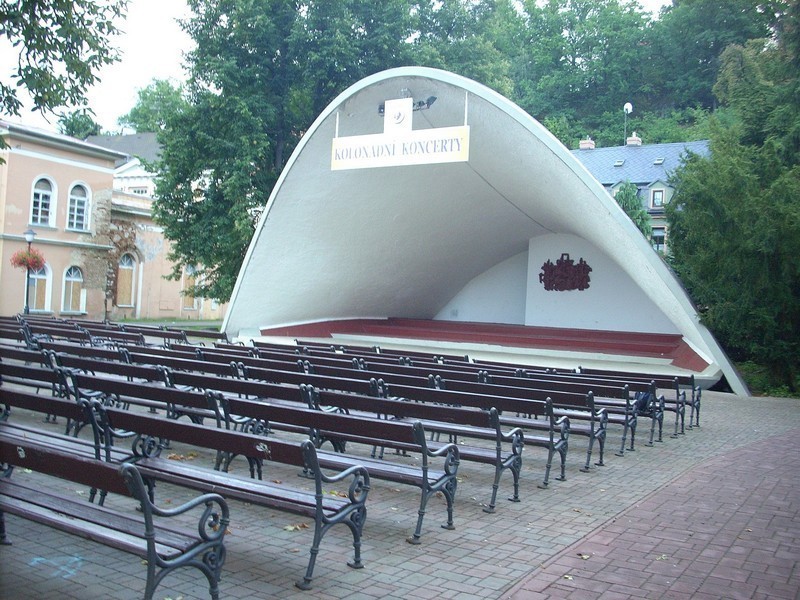 K botanické zahradě jsem šla přes šanovský park, kde se nachází troje lázně, z nichž jedny již nejsou v provozu a sice lázně Hadí. Jsou tu lázně Kamenné a lázně Vojenské a mezi nimi je v parku „Mušle“, kde se pořádají letní kolonádní konzerty.