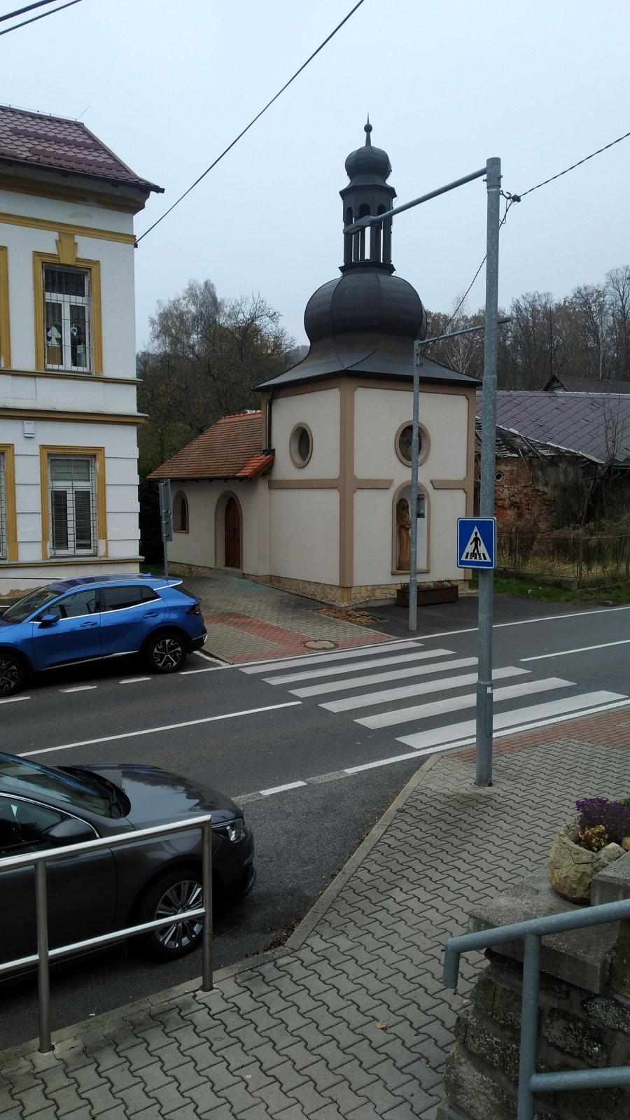 Vedle obecního úřadu v Ludvíkovicích u Děčína stojí nově postavená replika kaple, která zde dříve stávala.