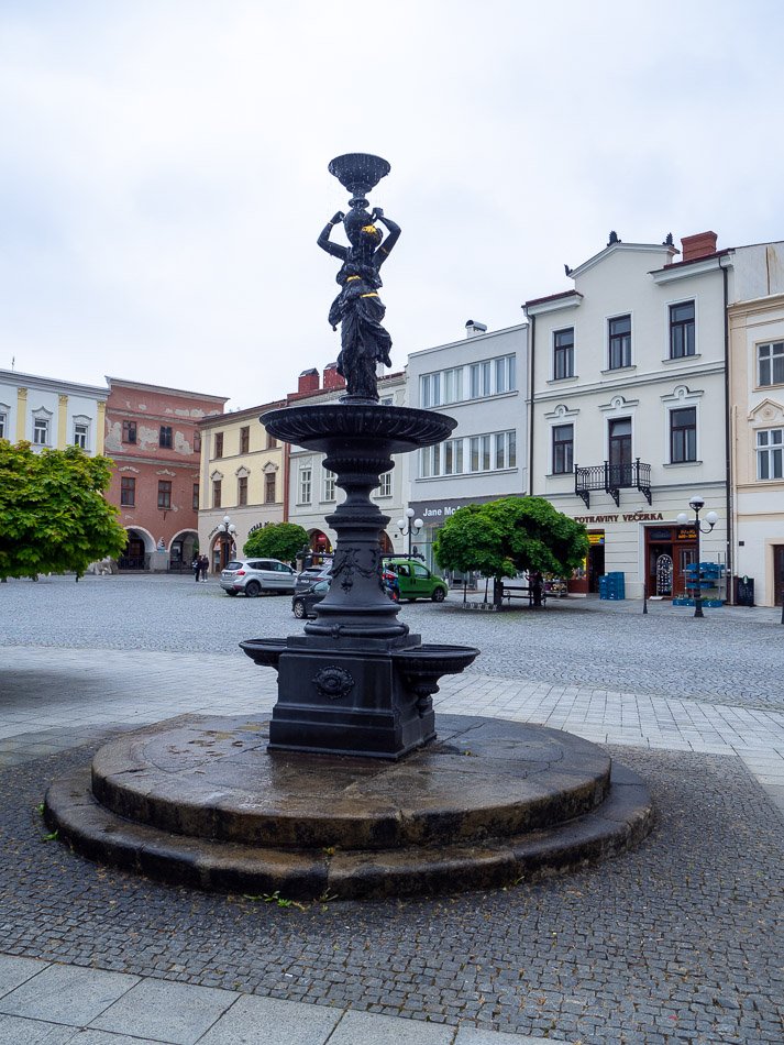 Jednou z ozdob náměstí Příbora je bezesporu litinová kašna se sochou dívky. Jde o původní vodní zdroj z roku 1898, který tvořila spodní část na kruhovém stupňovém podstavci. Spodní část tvoří sloup s čtyřhranným základem, po dvou protilehlých stranách je dvojice nádržek, na vedlejších bocích podstavce rostlinná ozdoba. Následuje zužující se sloupek kruhového průřezu, s ornamentální ozdobou, dál se sloup zužuje a rozšiřuje do vrcholového kruhového vrcholového bazénu. Původně byla kašna bez vrcholové dívčí ozdoby, ta přibyla o pár let později, začátkem 20. století. Socha je opět litinová, dívka je částečně odhalená, na ramenou drží amforu s tryskající vodou.