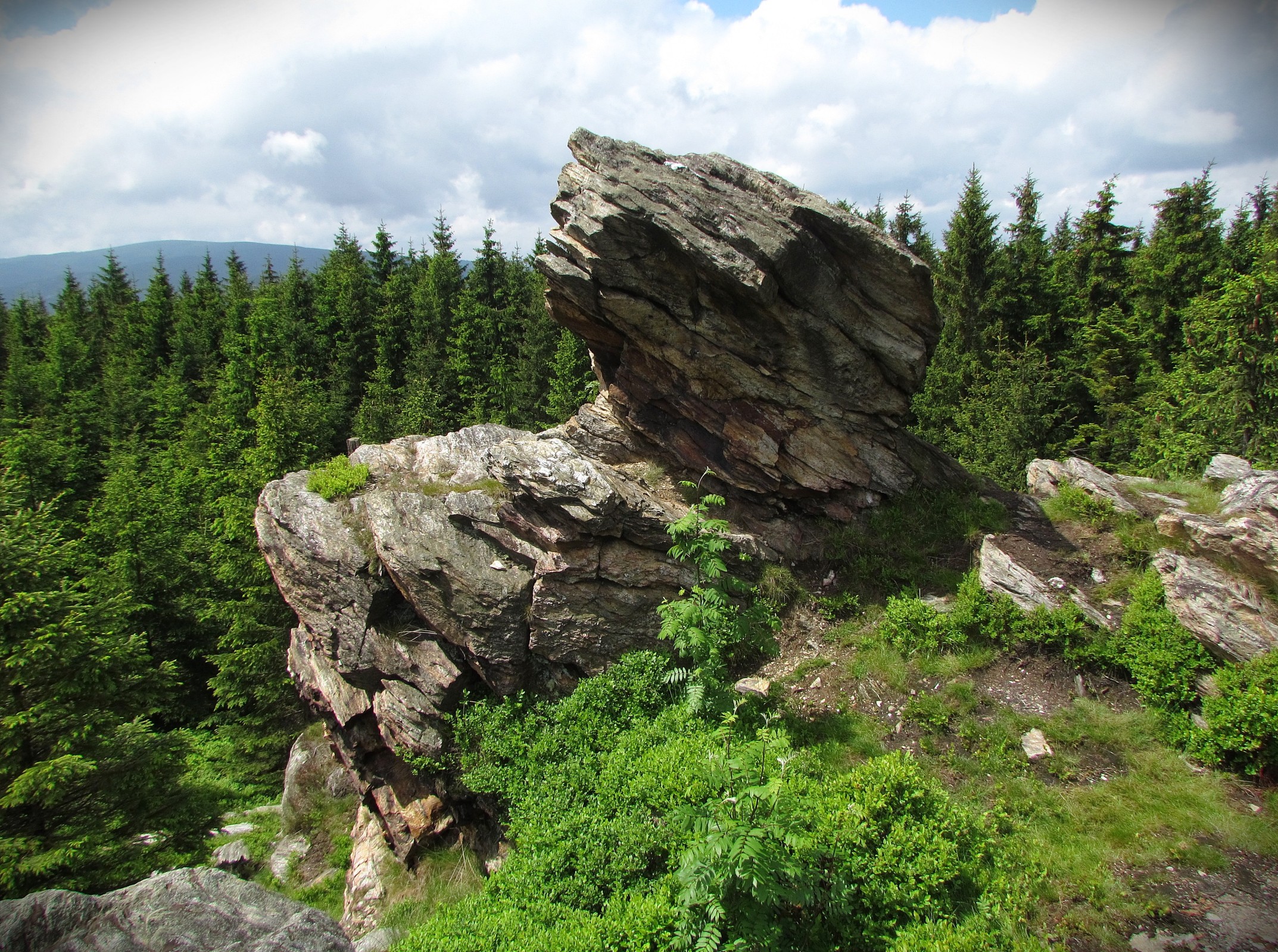 K vrcholkům nečekaně malebného a vyhlídkového skalního pásu se dostanete, pokud budete sledovat značení Údolské hornické NS a červené a zelené turistické trasy, která od rozcestí Olověná štola klesá po hřebeni kolem malé kamenné rozhledničky k severozápadu. První šošolky skal vykukují z borůvčí už asi po 300 metrech. Nad hranu hřebene trčí vlastně jen nepříliš Vysoké balvany a skalky. Pokud vám ale vyjde počasí a kameny naplno ozáří paprsky slunce, místní zelená a amfibolitická břidlice se rozzáří teplými odstíny barevné stupnice a spolu s pohledem na protější mohutný masív Orlíku a Medvědího vrchu vám dopřeje mimořádně silný estetický zážitek.