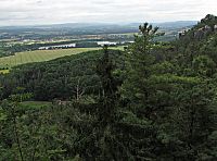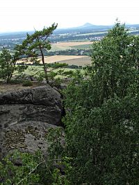 Z několika vyhlídkových míst je totiž možno se potěšit i pohledy na směrem k Turnovu vzdálené okraje Příhrazských skal a na ohromnou plochu zemědělsky obdělávané krajiny s velkou množinou sídel, z nichž tím nejbližším je obec Olšina, Březina s rybníkem Žabakorem a Žďár. Uvidíme odtud i vzdálenější krajinné dominanty, jakými jsou hora Ještěd a vrch Ralsko, ale ty už do oblasti Českého ráje samozřejmě nepatří.