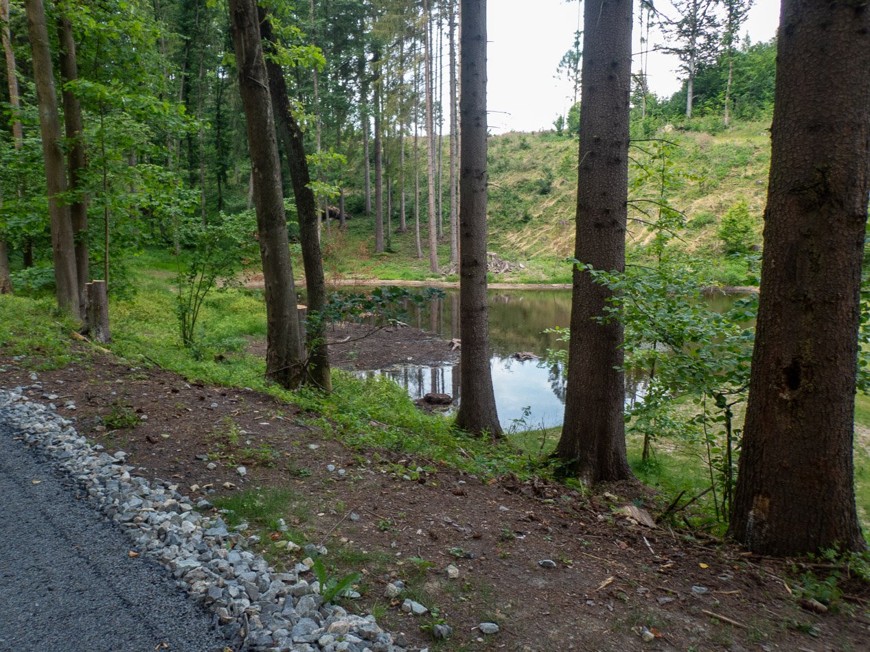 Křižovatka Pod lomem, cesta pokračuje vpravo