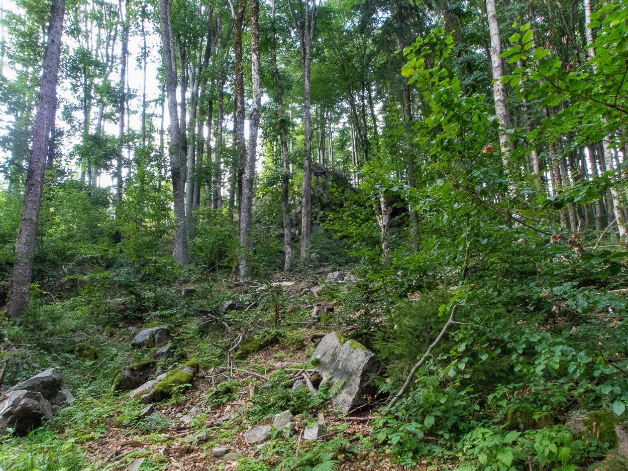 Nicméně stačilo koukat trošku nad cestu a když asi necelý kilometr od zmíněného rozcestí vidím kolem cesty poněkud větší shluk kamenů, řekněme rovnou kamenné suťové moře (raději jezírko), dá se důvod pojmenování tohoto Kamence pochopit. A když už vidím od cesty nějakých 50 m jakýsi větší útvar, je důvod prozkoumat, co se to v lese skrývá. V mapách.cz se vskutku značka pro skalisko vyskytuje, takže někdo už ho i zaznamenal. Při běžném ohledání jde o skalní výchoz, vlastně několik výchozů, jeden viditelný vyšší za ním nižší. Asi zajímavější je ta špičatá první skála, odhadem délky 25–30 m, převýšení skalního vrcholku od paty by mohlo být min. 8 m (zřejmě i víc). Podle geologické mapy jde o metamorfit, konkrétně rulu, což je v Jeseníkách běžná hornina. Struktura horniny má být zrnito-šupinatá, drobnozrná, minerální složení dvojslídného typu. K úplnosti dodáme, že Hanušovická vrchovina je součástí Českého masivu, geologicky krystalinika, a prevariského paleozoika. Oblast je lužická (západosudetská), nadřazený region je orlicko-sněžnické krystalinikum sněžnické skupiny. Doba vzniku paleozoikum, útvar spodní paleozoikum. Česky se paleozoiku říká prvohory, spodní jsou ty období silur, devon, karbon a perm, časově tak cca 450–550 milionů let zpátky.