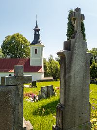Filiální kostel Neposkvrněného Početí Panny Marie. Postaven v r. 1688, věž byla dostavěna r. 1878. U kostela pískovcový kříž z r. 1794 a pomník padlých v 1. svět. válce. Jednolodní stavba s odsazeným presbytářem v ose kostela. Na něj navazuje pokračování sakristie. Vstup do kostela představěnou předsíní. Kostelní areál doplňuje stále používaný hřbitov, některé původně německé náhrobky dostaly nové použití s novými českými pohřbenými.
