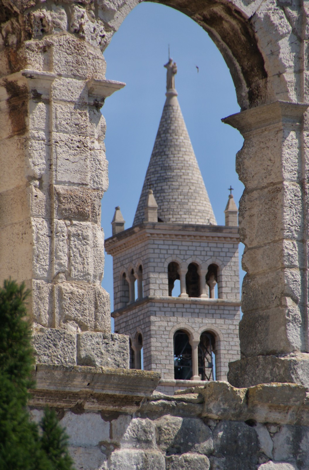 Jednou z mnoha výrazných sakrálních staveb, zdobících centrum chorvatského historického přístavního města Pula, je františkánský klášter s bazilikálním kostelem sv. Antonína Paduánského. Patří také k památkám nejznámějším, protože se tyčí téměř přímo nad zdejší slavnou římskou arénou. Díky této poloze a 45 metrů vysoké věži, která je nejvyšší stavbou Puly, považují mnozí návštěvníci tento – až strohý – neorománský kostel za pulskou katedrálu. A i když se jedná o památku určitě zajímavou a navštíveníhodnou, je to „jen a pouze“ novostavba z I. poloviny minulého století, jejíž spolupatronkou je sv. Tereza a která stojí v místech někdejší staré nemocnice.