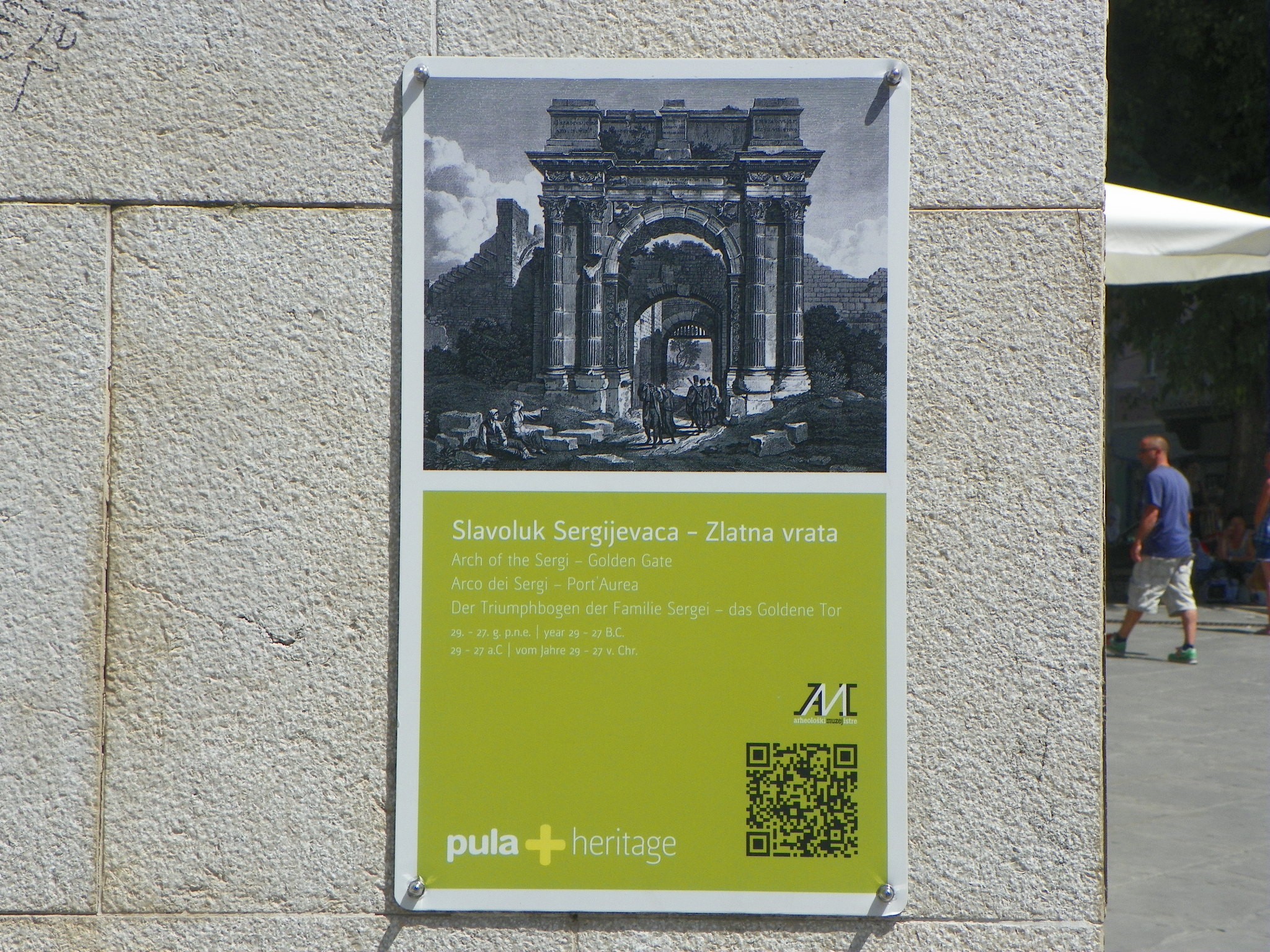 Sergiův oblouk (Slavoluk obitelji Sergijevaca) v ulici Sergijevaca přitahuje pozornost zachovalými sloupy a ozdobami - okřídlená bohyně Vítězství, korintské hlavice.