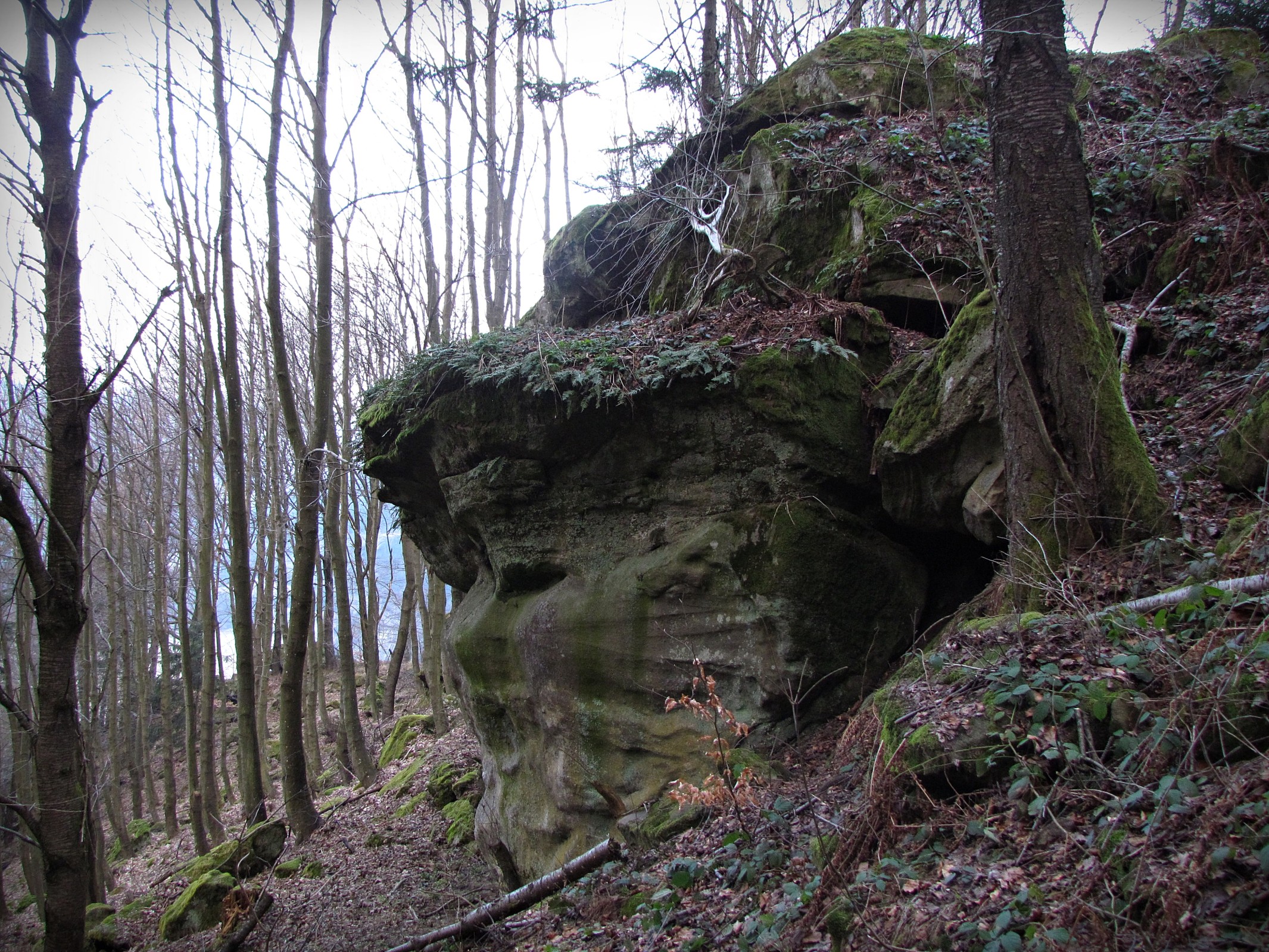 Nyní se spolu podíváme na místo na první pohled málo atraktivní, na vrcholové témě kopce Stráž II (623 m). V konkurenci blízkých Pulčínských a Čertových skal na něj vystoupá asi málokdo, a proto jsou jeho "skalní tajemství" veřejnosti téměř neznámá... Především musím pochválit Mapy.cz za to, že zdejší skalnatý pás je na nich tak dobře vyznačen. Toto mi ale nebylo vodítkem při jeho podrobném průzkumu, neboť já na něm kdysi v daleké minulosti už byl. Tehdy to bylo bohužel bez fotoaparátu, vše tu bylo daleko zarostlejší, a tak mi v paměti utkvěla jen jedna výrazná skála podoby dravého ptáka. Nehledě na fakt, že tomu bylo už tak dávno, že by vzpomínky na tuto dávnou toulku při mé počínající stařecké demenci neodhalil ani do dna zkonzumovaný hrnec vtipné kaše. Ale v dnešním osvíceném věku je naštěstí každému z nás umožněno nahradit děravou paměť tou daleko dokonalejší na paměťových kartách našich fotoaparátů, a tož hurá na průzkum "neznámého" skalního terénu!
