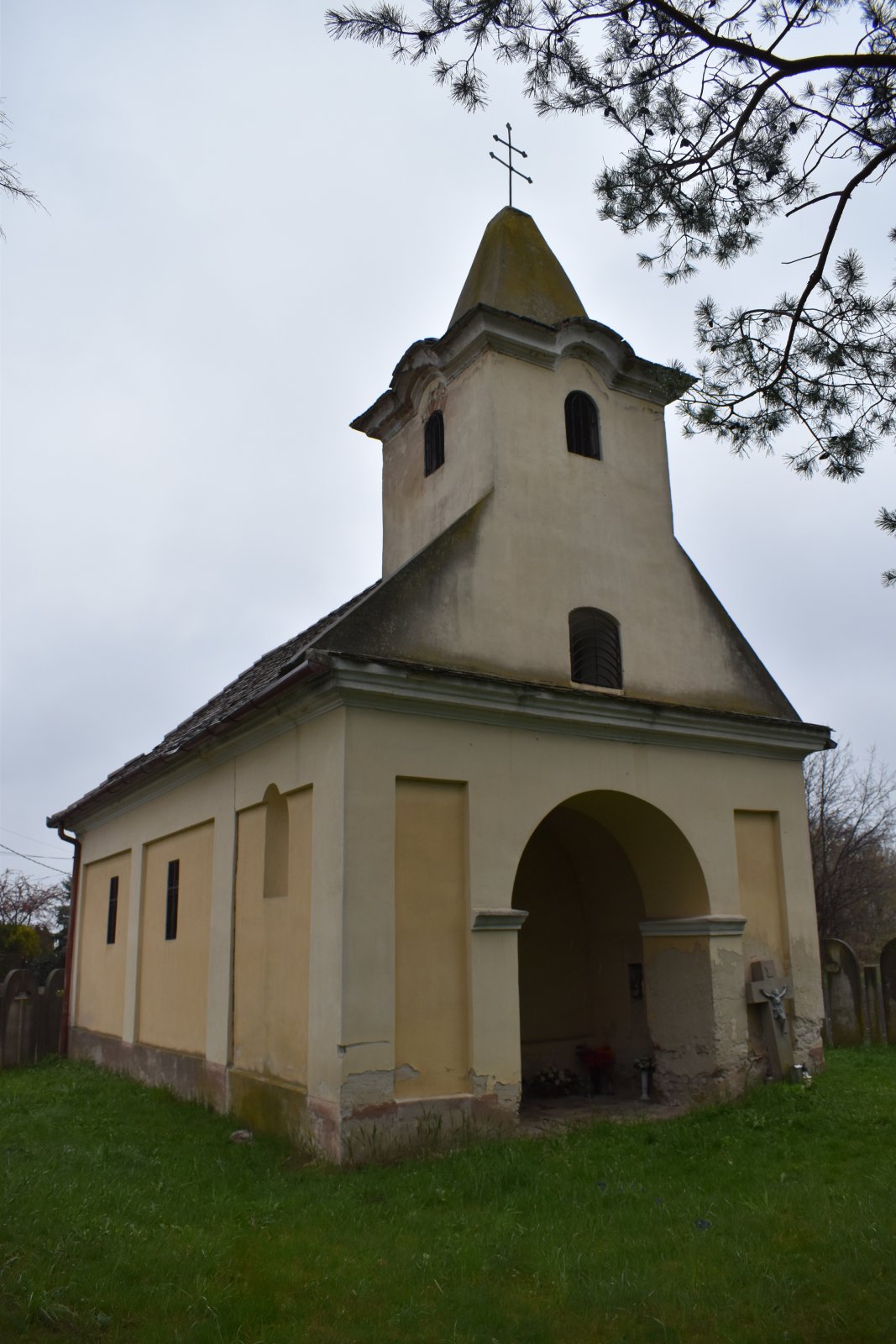 Vľavo u kaplnky sú štyri staršie kamenné kríže.