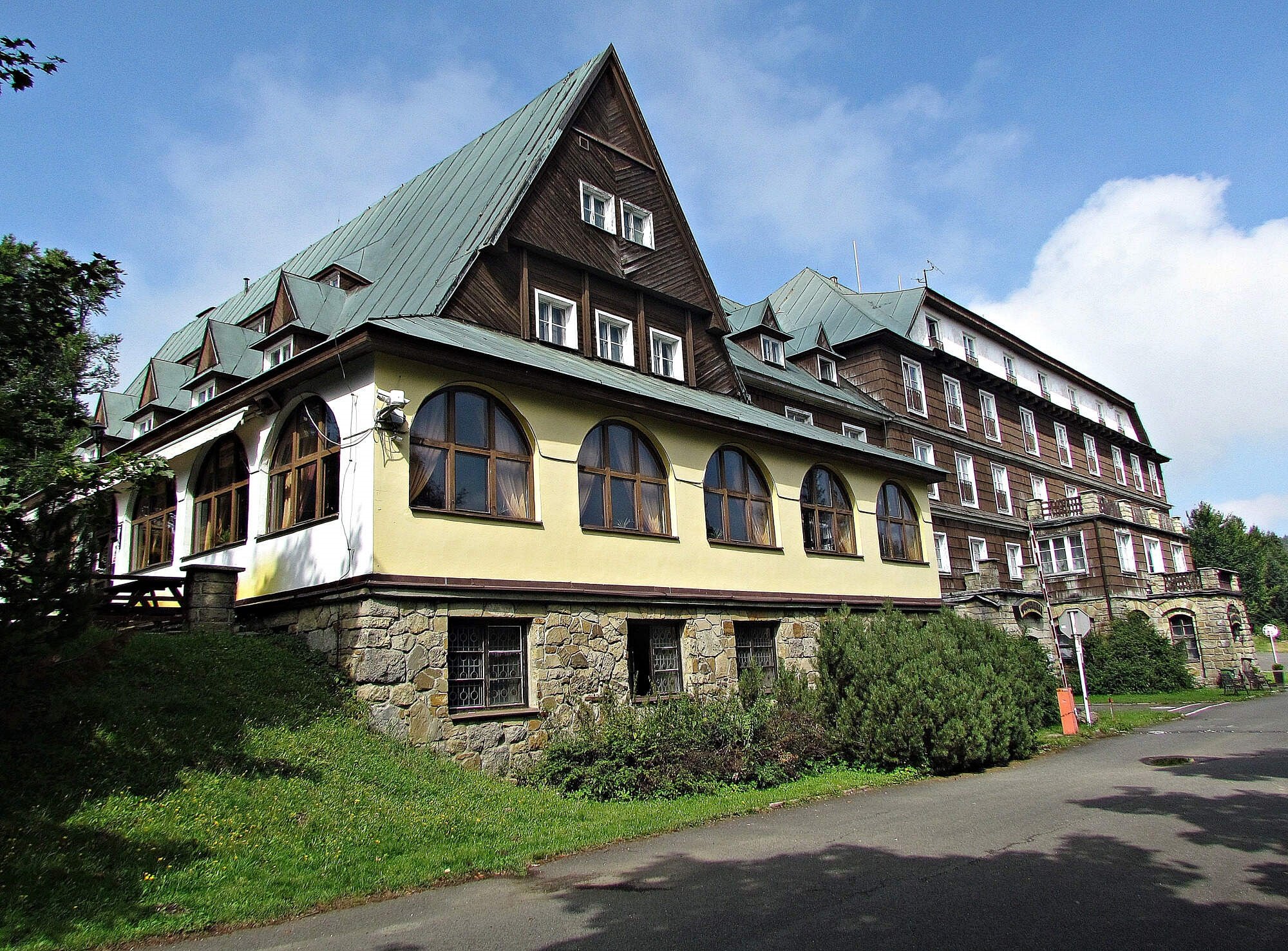 Stojí trochu stranou, asi 50 metrů pod „Maměnkou“, poblíž lyžařských vleků v nadm.výši 1018 m a patří nejstarším horským hotelům u nás. Po dostavbě začal být funkční od roku 1926 (za 3 roky jej čeká významné jubileum) a po dobu své existence uvítal tisíce a tisíce hostů. Dokonce tu spaly i některé významné osobnosti jako např.prezident T.G.Masaryk a další.