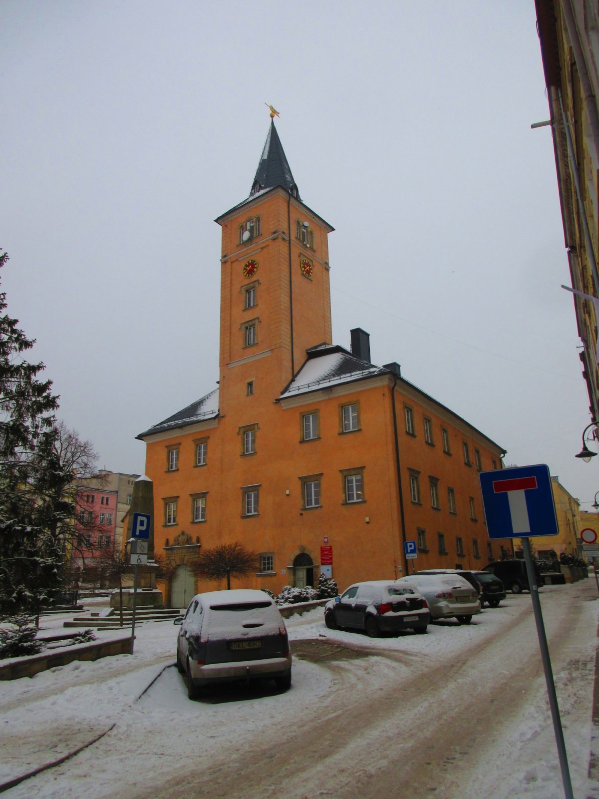 Současná radnice je čtyřboká stavba s čtvercovou věží na přední fasádě s jehlancovitou kupolí. Budova má čtvero arkýřů, 2 patra a je zastřešena mansardovou střechou. Rohy fasády jsou rustikovány a k hlavnímu vchodu, který se nachází v úrovni 1. patra, vede dvojité schodiště s kamennou balustrádou. Hlavní portál má trojúhelníkový štít. V budově jsou další dva portály, a to na straně věže, přičemž větší z nich je opatřen erbem a rustikou. V některých místnostech v přízemí se zachovala valená klenba s lunetami, jinde jsou pouze ploché stropy.