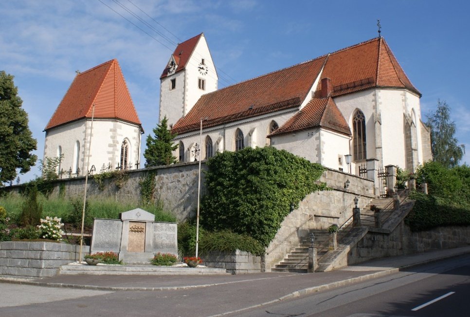 Gotický farní kostel Maria Himmelfahrt je poprvé písemně zmiňován již v roce 1335 (dokončen byl snad o pět let dříve) s tím, že za jeho založením nestála moc církevní (pasovský biskup), ale světská (princ). V té době byl ovšem kostel ještě zasvěcen sv. Jakubovi Většímu, což jistě souviselo s tím, že zde původně – a na místě současného karneru – stávala stejnojmenná dřevěná kaple (Jakobskapelle). Tu později nahradila románská kaple kamenná. Tato věžovitá stavba vznikla ve 13. století na místě dnešní křestní kaple a dodnes se z ní i něco málo zachovalo (kamenné bloky základů, žulová hlava na jižní stěně). Ve 14. století pak byla kaple přebudována do podoby gotického kostela. Nejprve vzniklo kněžiště, poté chrámová loď i žebrová á klenba a na závěr byl dokončen 5/8 závěr presbytáře.