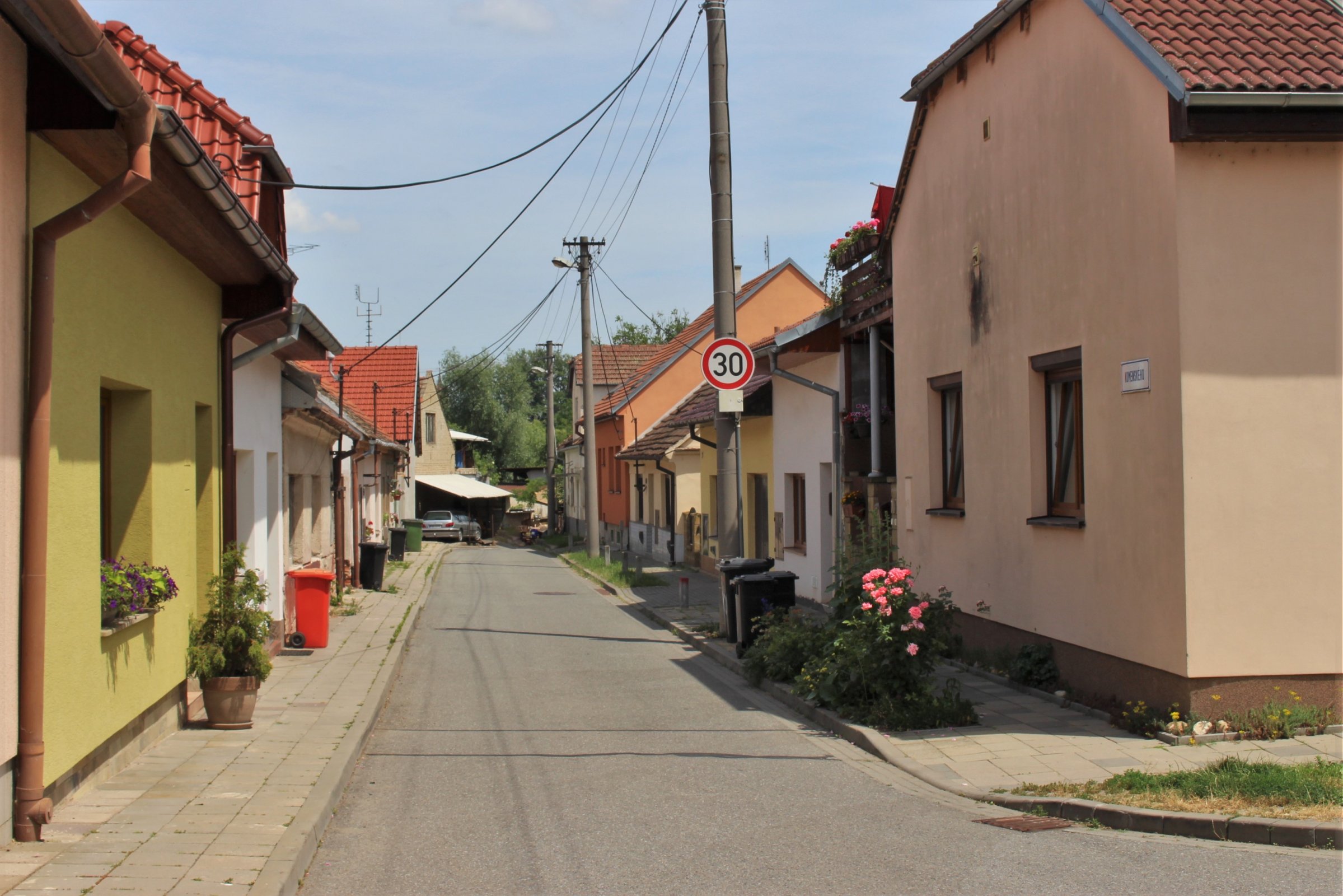 Čeladické stodoly a za nimi základy vodou zničených domů, výřez obrazu z roku 1837 (převzato s informační tabule) autor: pasatur