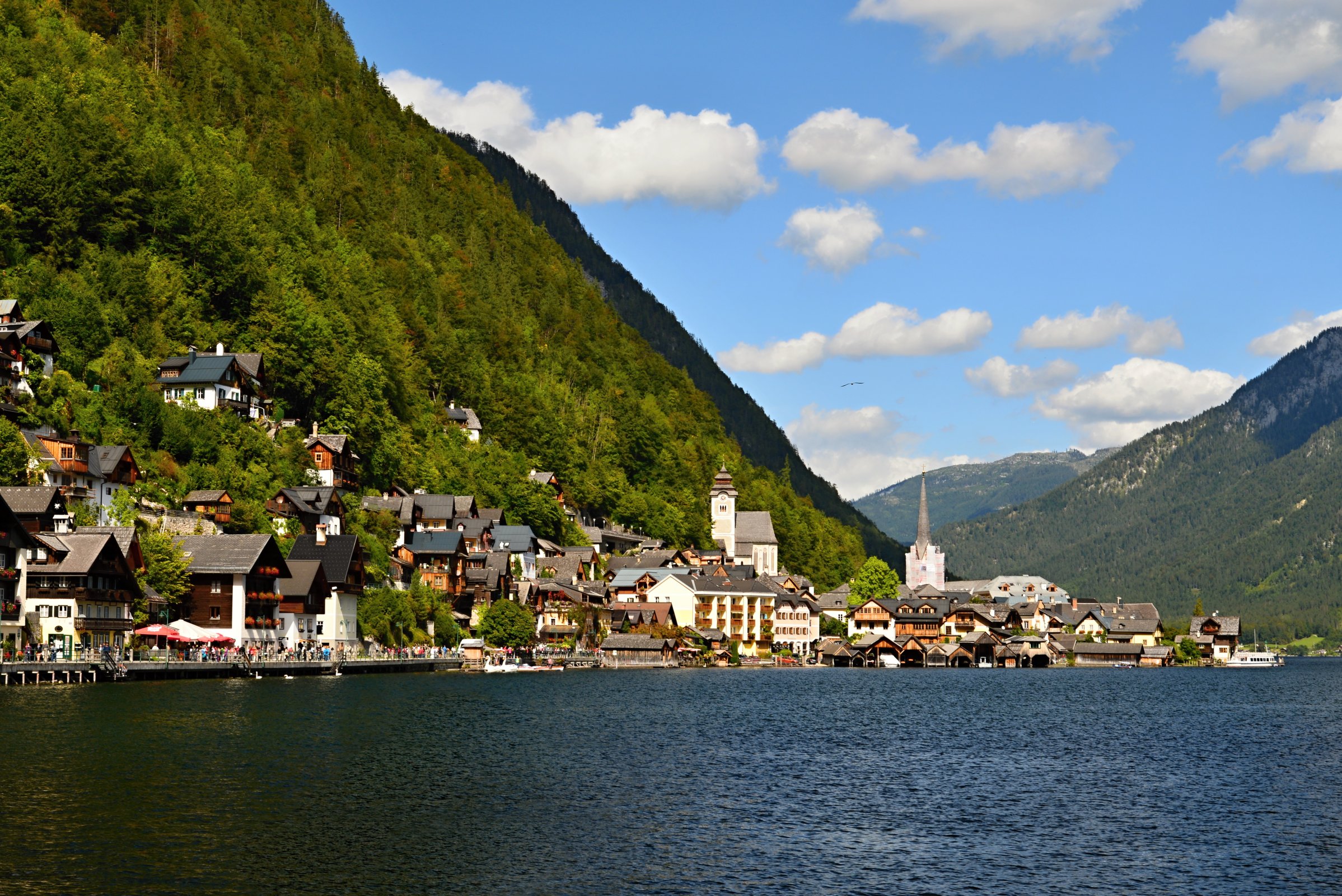 Rakousko: Hallstatt - pohled přes jezero k Hoher Sarsteinu
