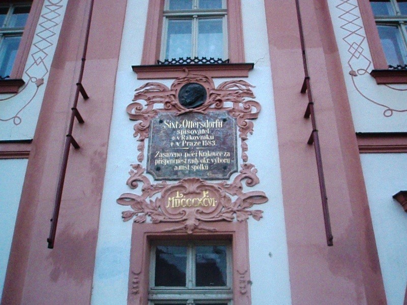 Venku, na průčelí radnice, je umístěna pamětní deska Sixtovi z Ottersdorfu, rakovnickému rodákovi - významnému překladateli, politikovi a humanistovi šestnáctého století, zastánci a stoupenci městských práv.