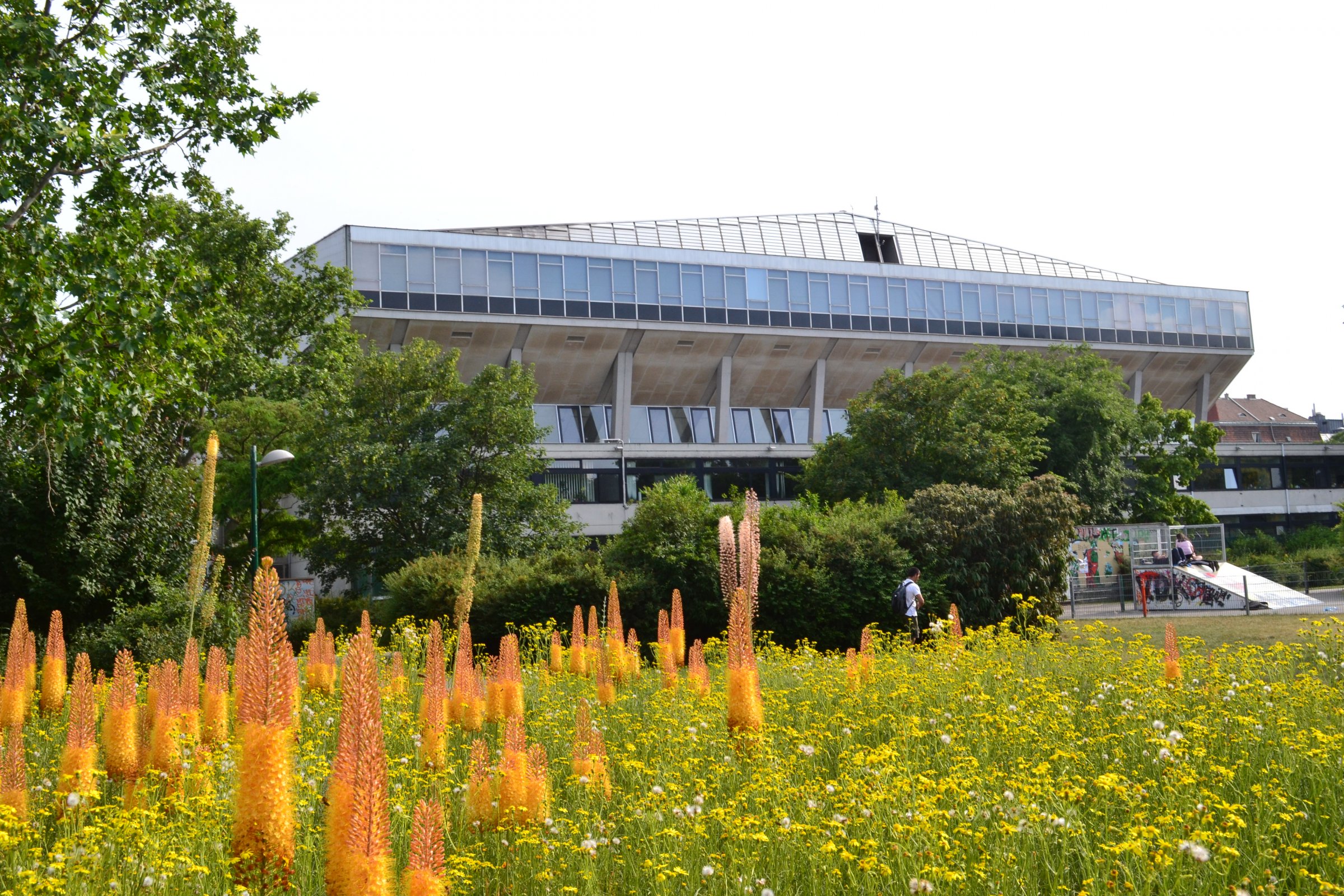 chodník od Stadthalle popri podzemných garážach k Vegelweidparku