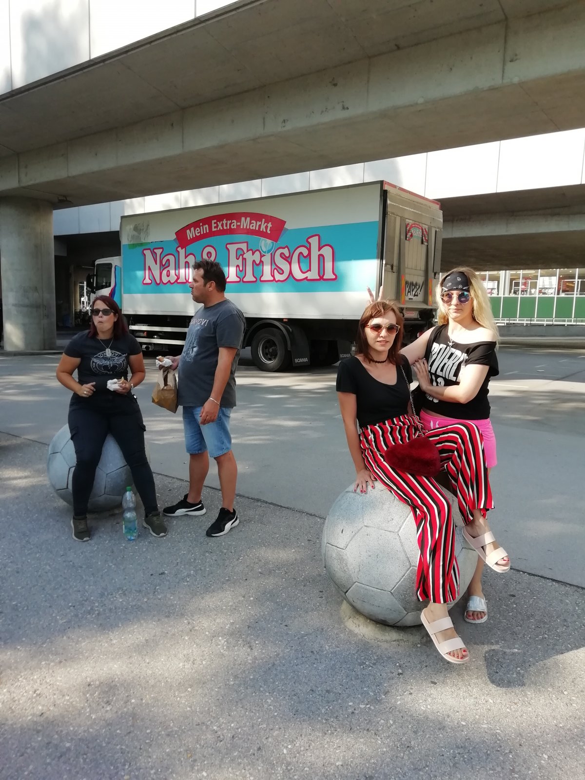 futbalové lopty pred štadionom