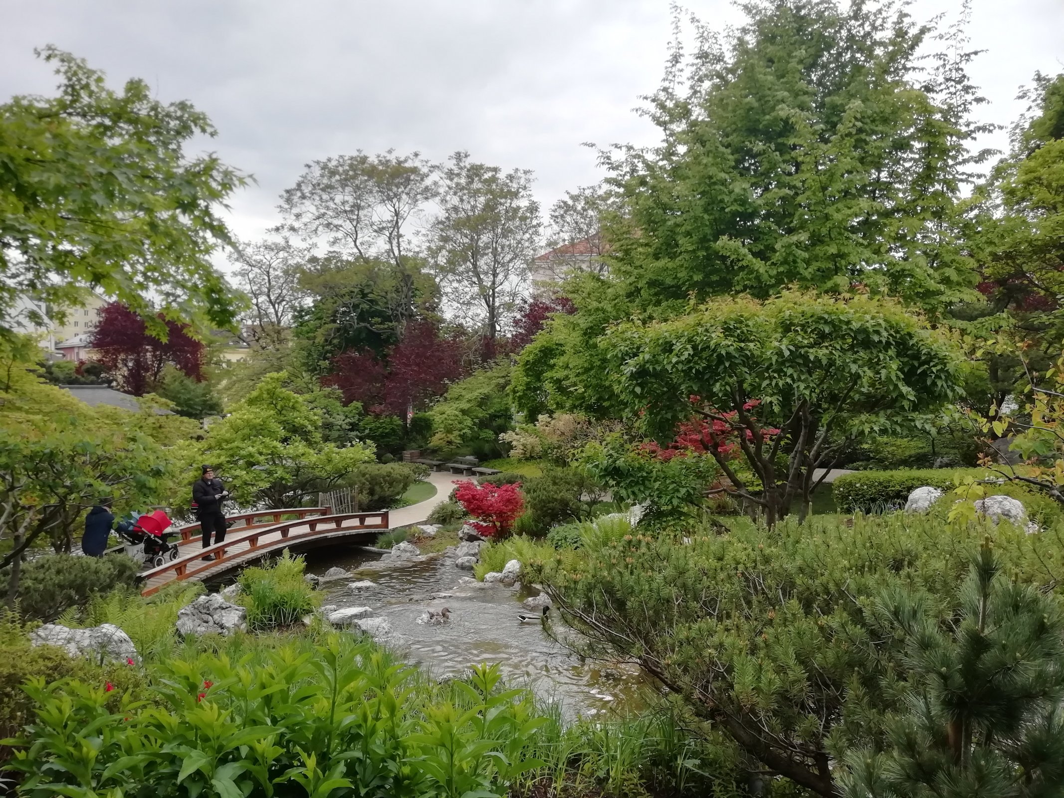 Nachádza sa tu japonská čajovňa, kamenná lampa v štýle "Yukimi", niekoľko kamenných sôch a fontána. Zaujímavá je výsadba s japonským javorom, okrasnými čerešňami a záhonmi rastlín, napr. s azalkami. Rozmanitosť rastlín vytvára meniaci sa obraz záhrady podľa ročných období. "Cieľom bolo, aby ľudia v pokoji pozorovali toto umelecké dielo a pokúsili sa nájsť tu vlastný vnútorný pokoj". Toto som si o japonskej záhrade prečítala a videla som pár fotografii na internete než sme sem zavítali aj my.