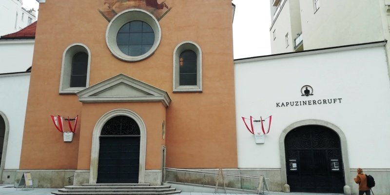 kostol a vstup do krypty nachádzajúcej sa pod kapucínskym kostolom