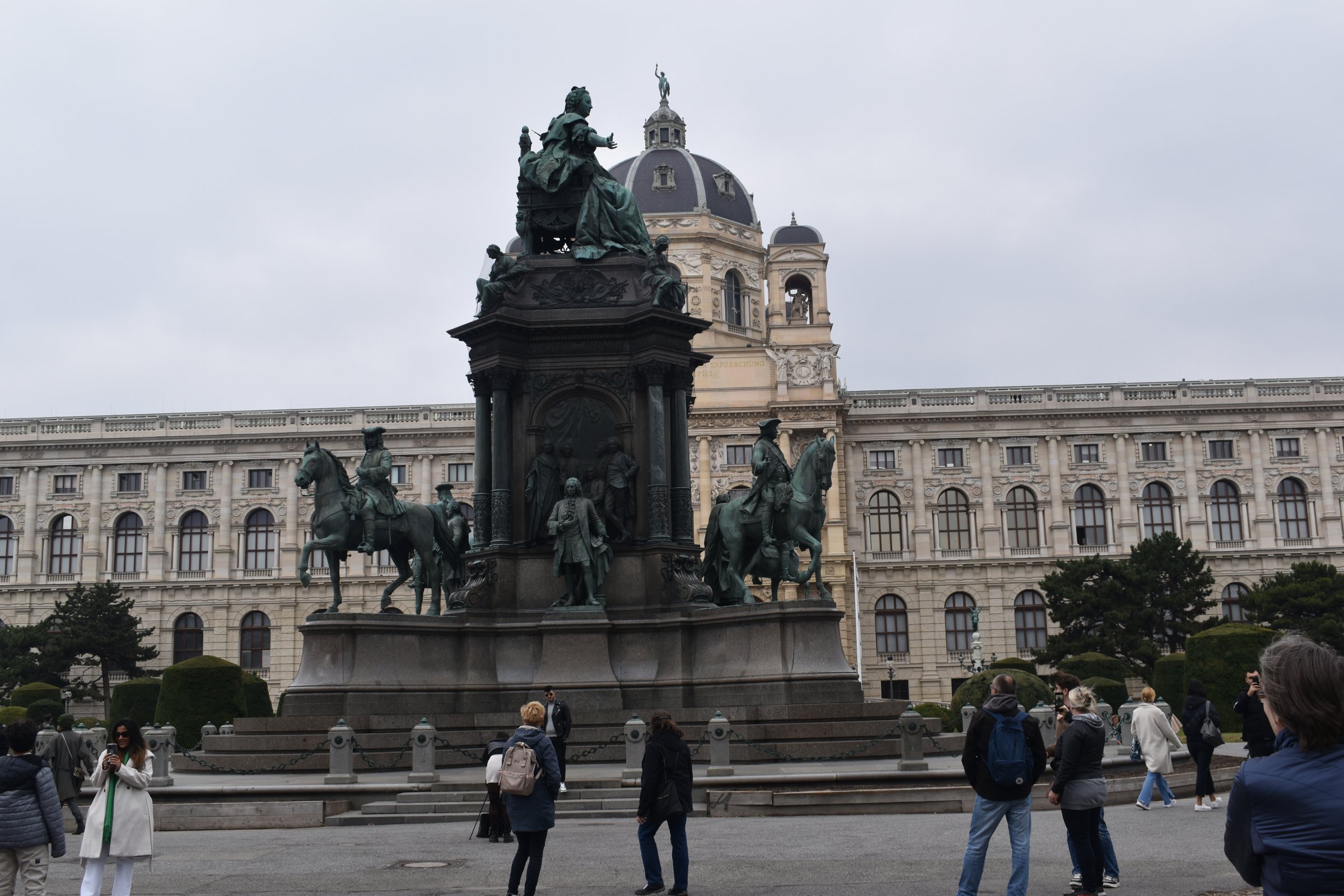 Z Motýlieho domu sme sa vrátili naspäť cez záhradu k pomníku W.A.Mozarta a neďalekým vchodom sme vyšli na druhú stranu ulice Burgring. Za chviľku sme došli k Námestiu Márie Terézie.