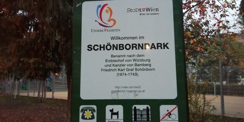 Našou poslednou zastávkou prvého dňa stráveného vo Viedni bol detský park, určený nielen pre deti - Schönbornpark. Pri vstupe do parku nás privítala tabuľa, ktorá hlásala, že park je pomenovaný po arcibiskupovi a kancelárovi Bambergu Friedrichovi Karlovi, grófovi zo Schönbornu (1674 Mainz, Nemecko - 1746 Wϋrzburg, Nemecko ). Dočítala som sa, že študoval v Mainzi, Aschaffenburgu, Ríme a Paríži. V roku 1703 bol vymenovaný za diplomata vo Viedni a 1705 sa stal vicekancelárom Svätej ríše rímskej. Podporoval záujmy malých nemeckých kniežat a postavil sa aj na stranu cisára Jozefa I. v jeho bojoch s pápežskou kúriou. V roku 1729 nastúpil na biskupstvá v Bambergu a Wϋrzburgu.