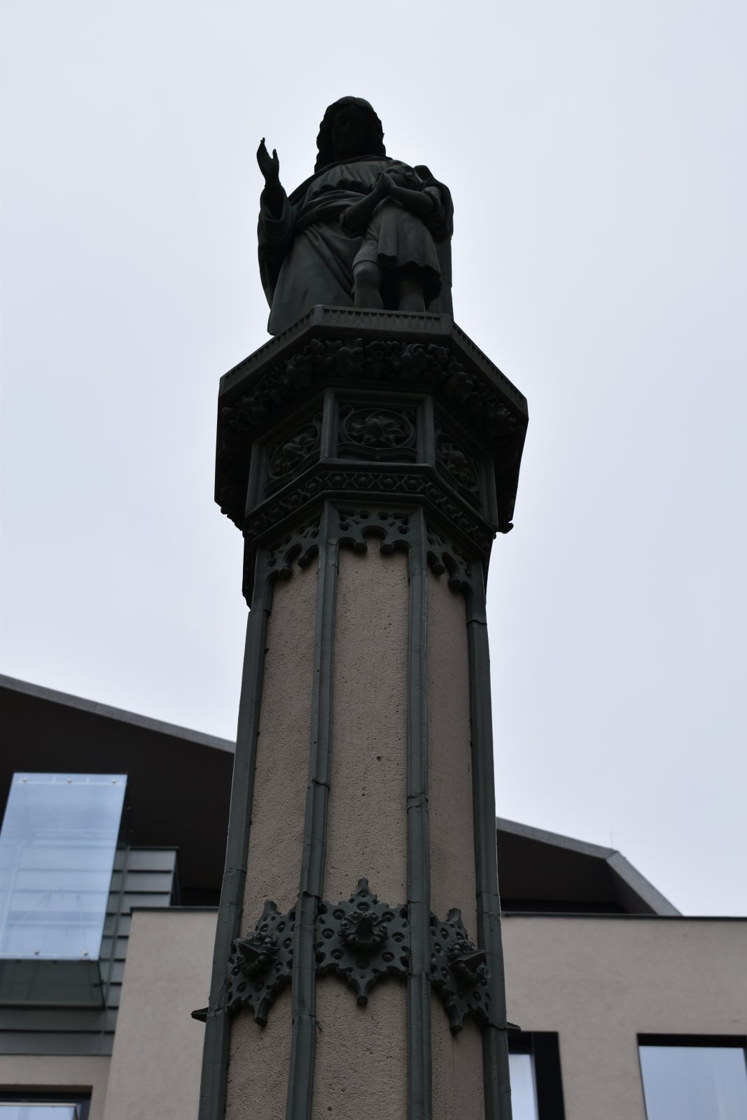 socha stojaca na kamennom podstavci ozdobenom kovovým rámom  autor: bublinko2