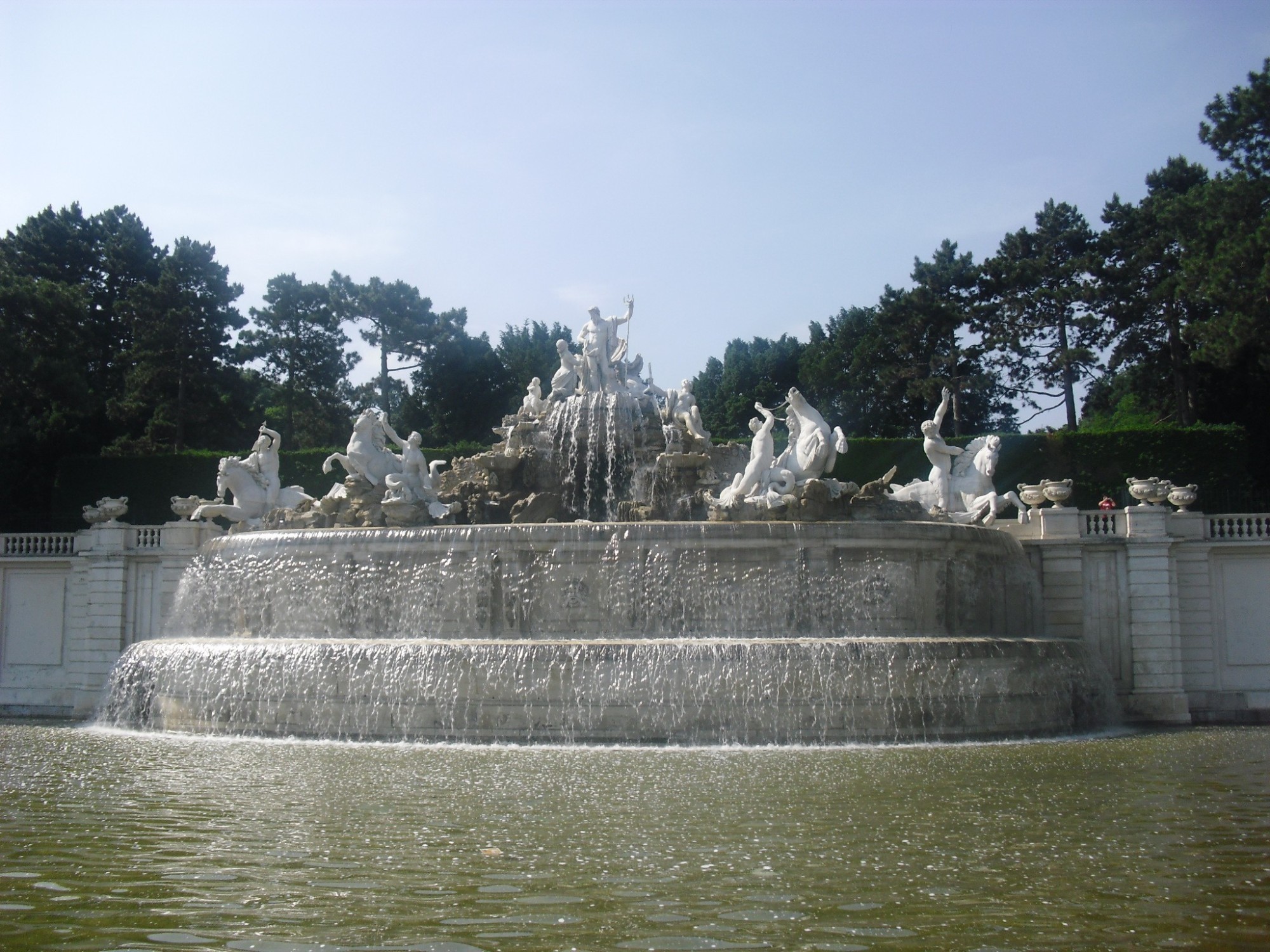 Je na ňu Krásny pohľad z Schnöbrunnu - kvetinový záhon, fontána, Glorieta. Fontána má obrovské rozmery. Najskôr si ju poprezeráte z dola a pokračujete bočným chodníkom až sa dostanete za hlavnú sochu. Odtiaľ vás očarí pohľad cez padajúcu vodu na Schönbrunn.