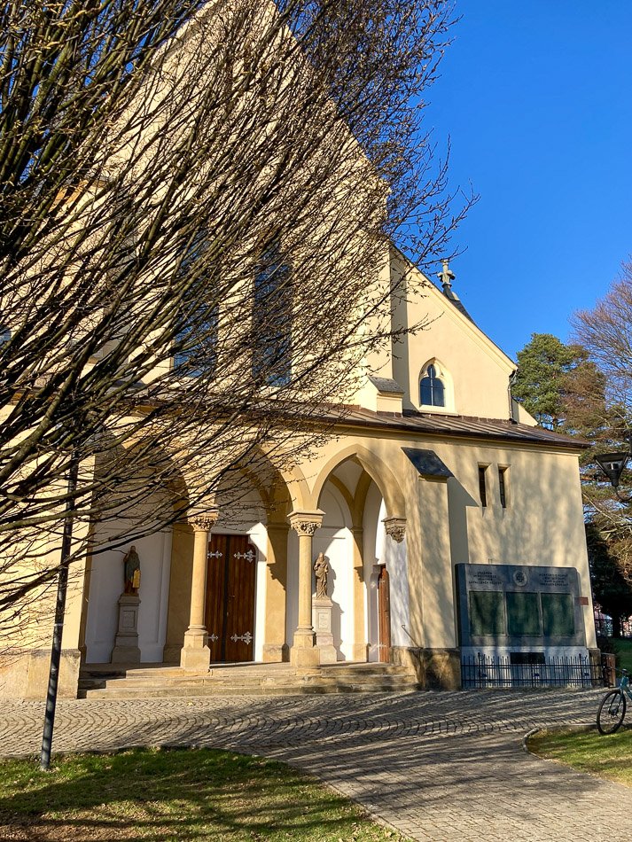 Pomník na pravé starně vstupu do kostela