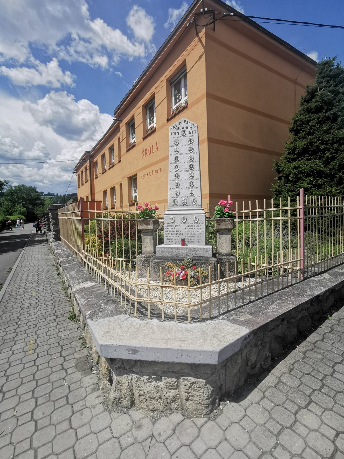 K pamiatke padlým obec postavila kamenný pomník. Tvorí ho kamenný stĺp umiestnený na podstavci. V najvyššej časti pomníka je nápis NAŠIM PADLÝM OBČANŮM 1914 - 1918, pod nápisom sú totografie padlých vojakov a ich mená.