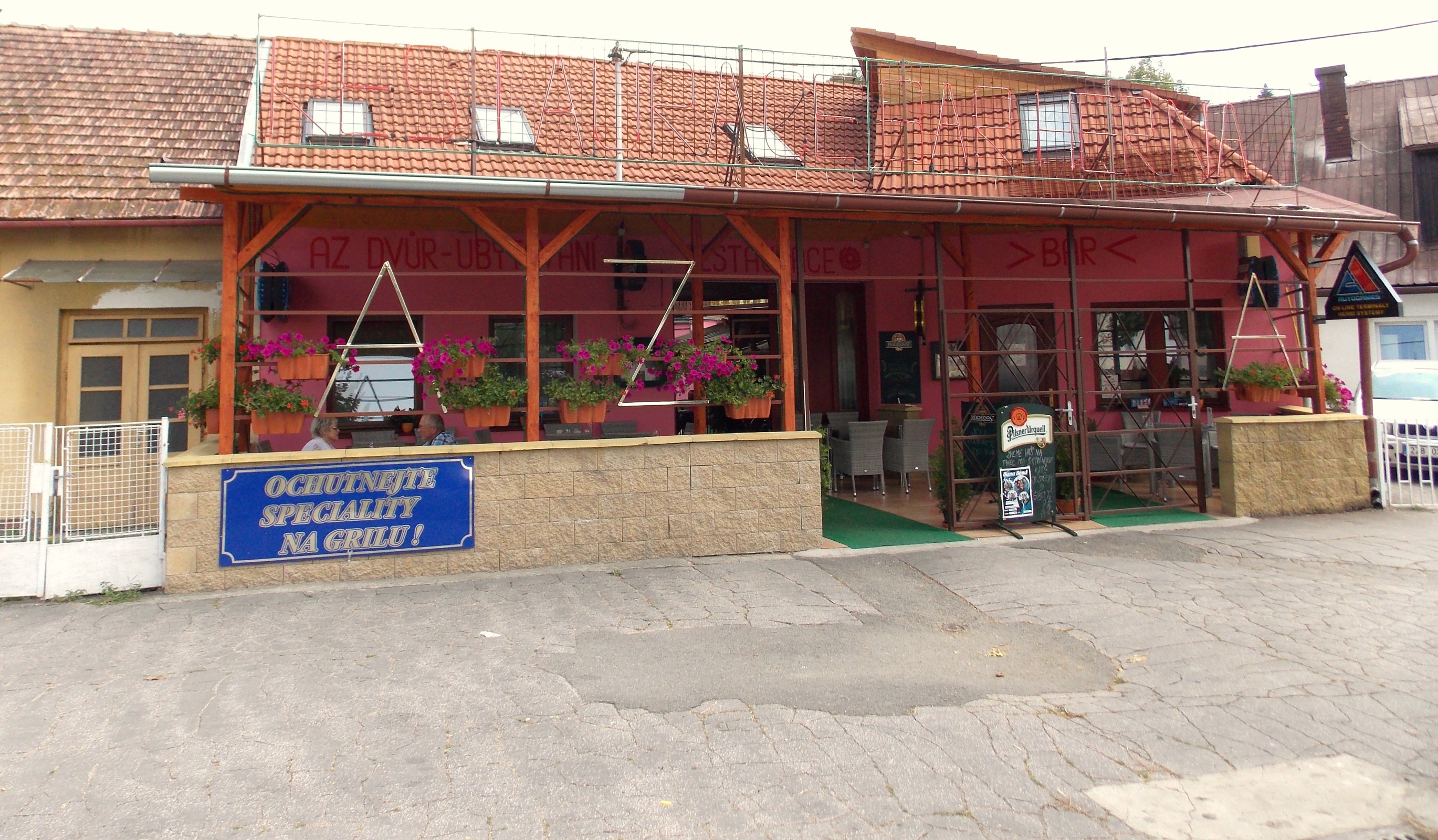 Navštívíte - li moravské lázně Luhačovice a nevíte. kam zajít na oběd, jednou z možností, kde se dobře a levně najíte je nová restaurace AZ dvůr. Stojí naprotí vlakového nádraží a baru RIMINI, na Nádražní ulici. Zaujme svou růžovou barvou a velkými prostory letní, kryté zahrádky, umístěné ve dvoře. Od nádražní budovy projdete vchodem restaurace přes halu s posezením, chodbičkou do vnitřních prostor, dál až na prostornou zahrádku, krytou střechou a deštníky, kde je romantické posezení. Pokračujete - li dál, na konci dvora je jídelna, kuchyň a WC. Pochutnáte si zde na české kuchyni, nabízí polední obědové, denní menu i víkendové menu, vyberete si z pěti jídel. Můžete ochutnat i speciality na grilu. Zdejší restaurace má velmi nízké ceny, menu za 50 kč, při rozvozu domů - menu 60 kč. Otevřeno je zde od 7 hod. do 14 hod. Nabízí zde možnost konání svateb a různých akcí, také ubytování nad restaurací ve dvoulůžkových pokojích a apartmánu se dvěma ložnicemi. Každý pokoj má sociální zařízení, je vybaven ledničkou, Tv, wi -Fi.