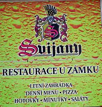 Pizza je zde k výběru - Margherita, žampionová, salámová, šunková,Hawai, slaninová, špenátová, pikantní, sýrová, tvarůžková, tuńáková, Quattro salaumi, zámecká, Canadesse, královská sýrováPollo, Italská, pizza tyčinky pizza chleba s česnekem, takže kdo dává přednost tomuto pokrmu, určitě si vybere. Kdo má rád hamburgry - mají tu více druhů jako je Zámecký Burger, pikantní burger, nivový, Cheddar, Texas, kuřecí, kozí, vegetariánský. Pro milovníky piva je v nabídce 11° Svijany, 11° Fandu - polotmavé, 11° Zámek-kroužkový ležák. Během roku se v prostorách zdejší restaurace U Zámku koná mnoho koncertů, koštů a dalších slavností.