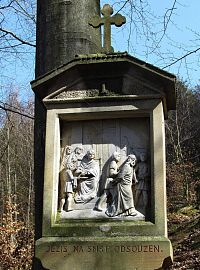 Při prvním pohledu na kamenné sloupy s kříži a fantastické reliéfy se návštěvník bude domnívat, že se jedná o „klasickou“ barokní cestu, jenže tahle vznikla až začátkem minulého století mezi léty 1917 až 1918. Tato „nová“ křížová cesta nahradila dvě mnohem starší předchozí a navíc se na jejich sloupech objevila (jako připomínka obětí I.světové války) také jména padlých z okolních vesnic.