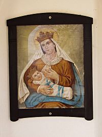 V jejím interiéru se nachází kopie tak trochu neobvyklého oltářního obrazu z kostela na Malenisku - podoba Bohorodičky kojící svého synáčka.
