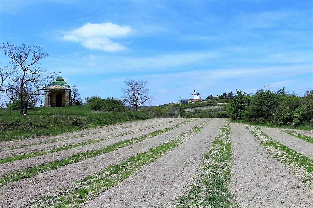 Pohled od kaple na větrný mlýn