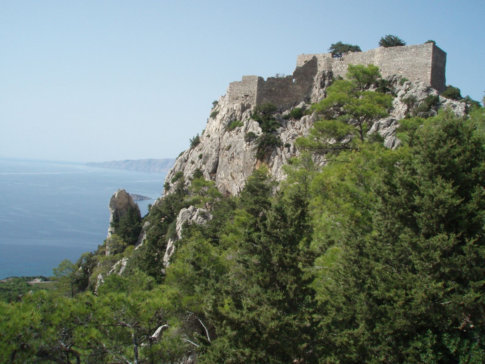 V jihozápadní části ostrova Rhodos se nachází území, které stojí za to navštívit. Při naší rodinné dovolené jsme si půjčili auto a nejprve jedeme do malé vesničky Monolithos. Přibližně 2 kilometry od ní je již z dálky vidět vysoká skála, která vypadá jako Velký Kámen. Na ní se nad moře tyčí hrad Monolithos. Jak naznačuje název, hrad postavili v roce 1476 Johanité na 236 metrů vysoké osamocené skále nad mořem v překrásné pobřežní oblasti v západním cípu ostrova Rhodos. Od parkoviště přimo pod hradem jdeme do kopce skrze malý lesík pohodlnou cestou i po několika desítkách schodů. Monolithos musela být určitě zajímavá pevnost, ze které však zůstaly již jen obvodové zdi, uvnitř nichž se dochovala pouze později postavená bílá kaple sv. Jana. Poblíž je také poměrně zachovalý objekt, který sloužil buď jako sýpka na obilí nebo možná to byla kaple. Polorozpadlým klenutým stropem je vidět obloha i širé moře. Vše je přístupné zdarma.