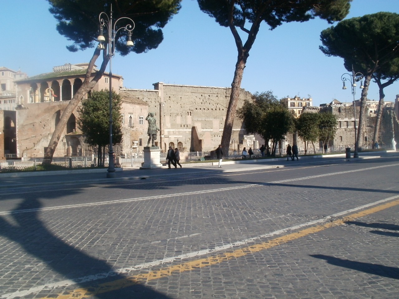 Po pravé straně lemují ulici Nervovo a Augustovo Fórum, Traianova tržnice a Traianův sloup.