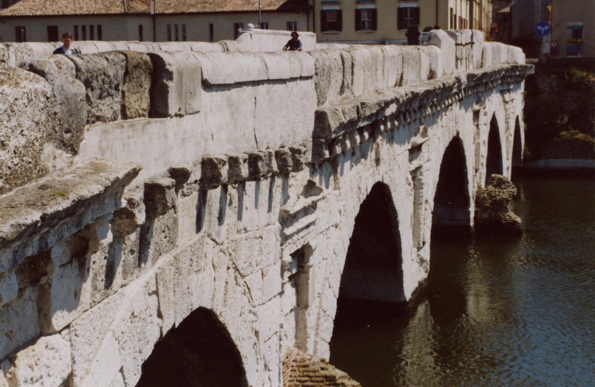 Sedmdesát metrů dlouhý starořímský most v italském městě Rimini – správně nazývaný Augustův a Tiberiův - se právem může pyšnit titulem nejstaršího silničního mostu světa. Však také již za pár let oslaví pěkné kulatiny; na hladině řeky Marecchia se bude jeho obraz odrážet již neuvěřitelné dva tisíce let. A stotřicetitisícové město Rimini, které mají mnozí stále zafixováno pouze jako světoznámé letovisko na pobřeží Jaderského moře a které přitom bylo založeno již ve 3. století př. n. l., má tuto úžasnou památku dokonce ve svém znaku. Místní tuto stavbu přezdívají Ďáblův most, protože podle pověsti při dokončení každé části mostu se prý jiná jeho část zřítila. A tak když římskému císaři Tibériovi nepomohly modlitby a oběti bohům, požádal o pomoc padlého anděla. Ten si za odměnu vyžádal duši první živé bytosti, která po mostě přejde. Tiberius přes most poslal psa (zbabělec, věděl bych o mnoha typech lidí, které bych tam vypustil mnohem raději než jakoukoliv němou tvář), čímž ďábla přechytračil i patřičně na..., tedy rozhněval. Ten se pokusil most rozdupat, ale svůj bezchybný výtvor zničit nedokázal. Zůstaly však po něm – dodnes viditelné - stopy kozích paznehtů v kameni.