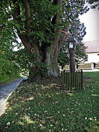V jejím sousedství stojí sloupová Boží muka zrobená v 17.století neznámým lidovým umělcem z jediného kusu dubového dřeva. Roku 2004 byla restaurována p.Šlezarem z Olomouce tak, aby spolu strom i památka tvořily společné romantické zákoutí.