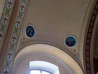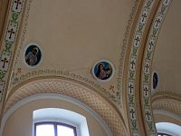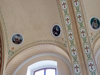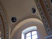 Vnitřní prostor ještě více připomíná plnohodnotný kostel, patrně i díky valené klenbě i lunetovými oblouky nad trojicí bočních oken každé strany svatostánku.
