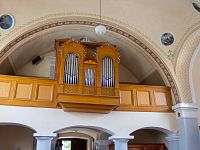 Nad vstupem ze západní strany je hudební kruchta s varhanní skříní (datováno 1872), varhany jsou ale patrně nefunkční. Oltářní obraz znázorňuje legendu o Narození Panny Marie, která byla též téměř zázračná jako narození Krista. Podle apokryfních legend se Marie narodila rodičům (Sv. Jakub nebo Jáchym a sv. Anna) již ve značně pokročilém věku.