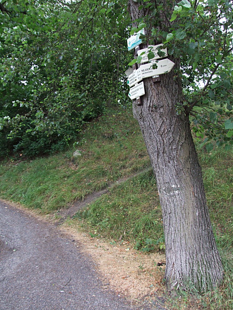 Rozcestník umístěný na letitém stromě u místní komunikace (Nádražní ulice) označuje směr turisticky neznačené cesty k železničnímu nádraží Nejdek. Rozcestník je součástí zeleně značené turistické trasy, která přichází od Horní Blatné přes centrum Nejdku a pokračuje dál jižním směrem přes Novou Suchou na Novou Roli. Stejným směrem se od rozcestí můžete vydat k asi 0,5 km vzdálenému výchozímu bodu Naučné stezky Děti dětem. Tato NS je dlouhá 5 km a má 8 zastavení se zaměřením na místní rostliny, zvířata, horniny i obyvatele. Zajímavá je tím, že ji vytvořily děti, odtud název Děti dětem.