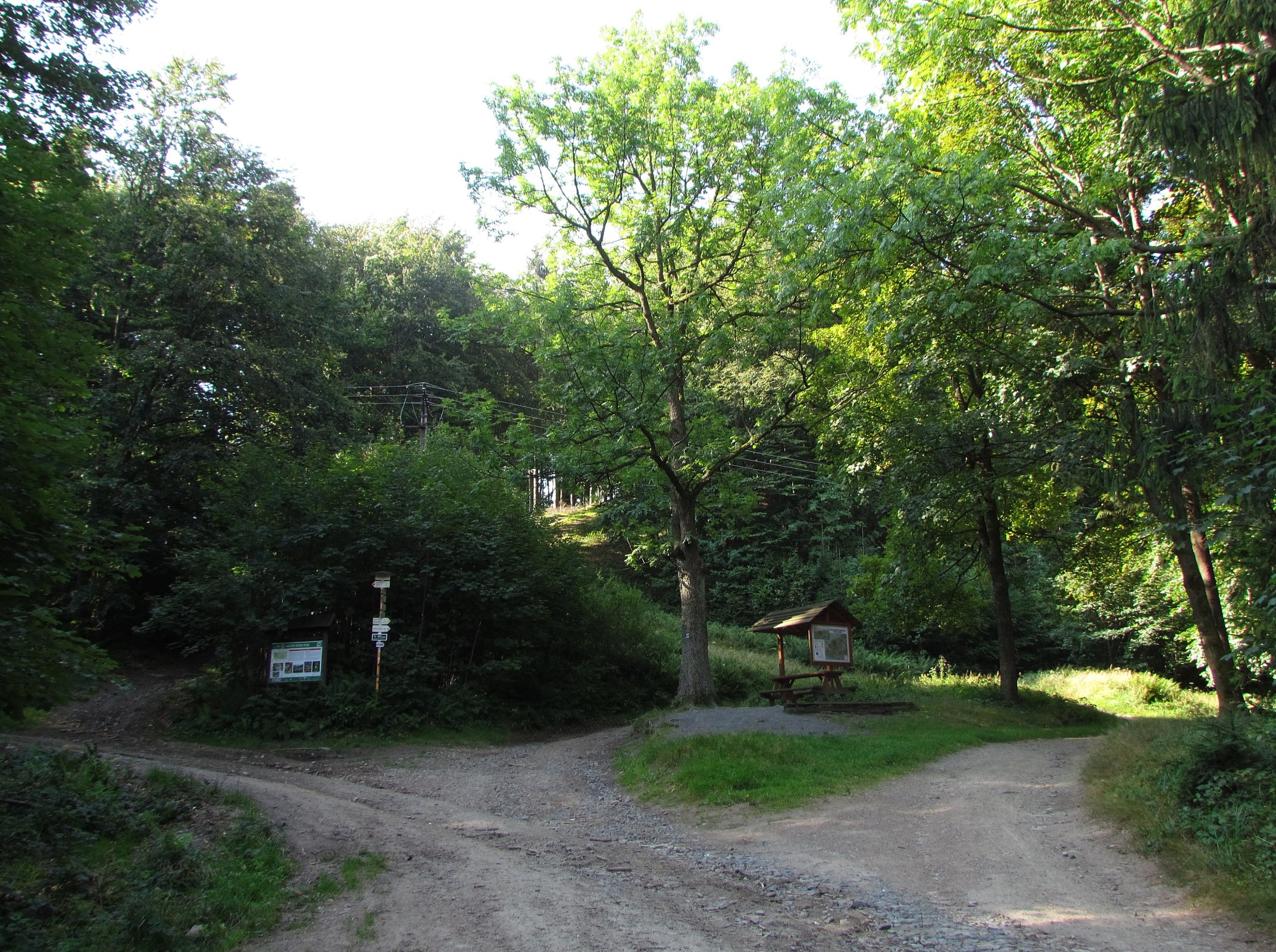 Na významné turistické rozcestí Pod Kyčerou (698m) narazíme, pokud se vydáme po barvách hned čtyř tras od zastávky busu na Tesáku směrem na jihozápad. Je od ní vzdáleno sotva pět minut chůze lesní cestou po mírně stoupajícím hřebenu. Ti, kteří nestihli doma posnídat, mohou usednout ke krytému přístřešku s lavičkami a utišit řvoucí žaludky, ti sytí pročíst informační tabuli, zacestovat prstem po velké mapě a rozhodnout se, kterou značku pro dnešní výlet zvolit.