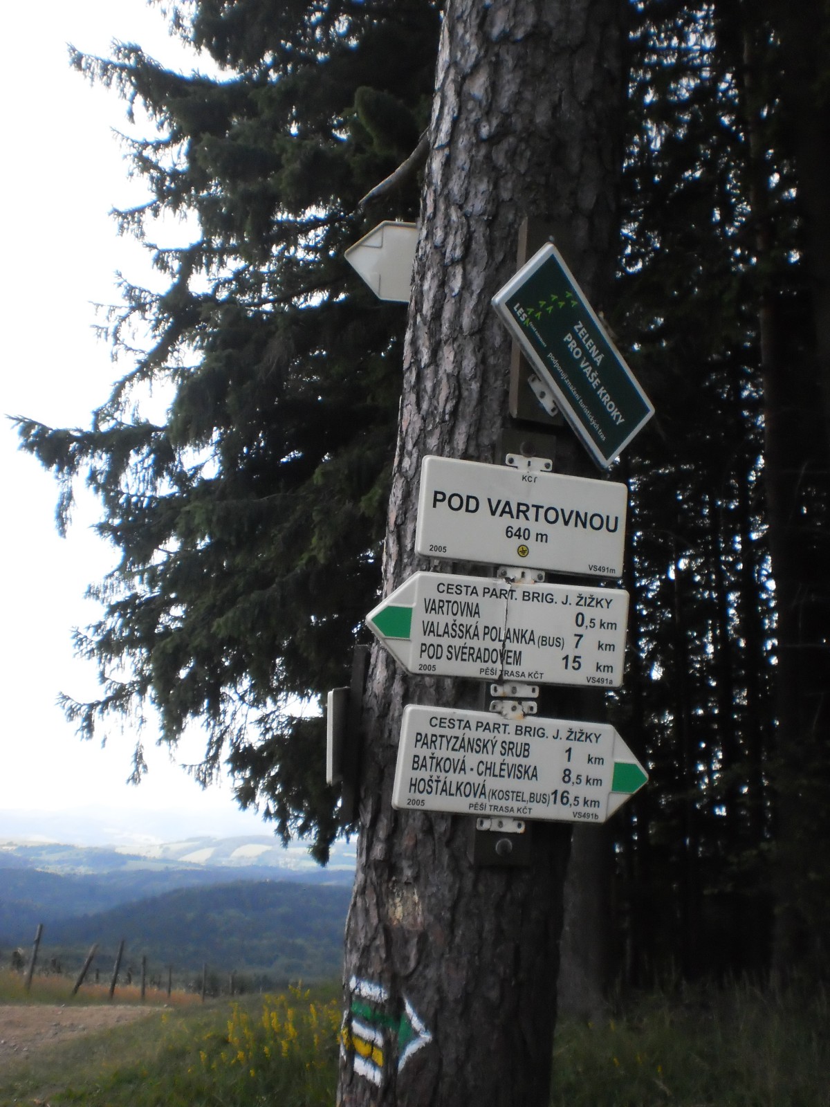 Půl kilometru pod kopcem Vartovna, kde se nachází stejnojmenná rozhledna, o které se více dočtete zde, se rozdělují dvě turistické stezky. Rozcestí Pod Vartovnou tak nabízí možnost putovat jednak na vrchol, jednak do Liptálu a dále na Hošťálkovou po zelené, jednak po žluté na Syrákov a Všeminu. Po zelené půjdete částečně po zpěvněné komunikaci. Kilometr za rozcestím pak můžete shlédnout partyzánský srub, který upomíná na časy 2. světové války. Činnost tohoto odboje byla velmi silná zvláště na Valašsku, kdy zde Němci vypálili několik osad a vesnic. Naopak Syrákov, kam putování trvá 2 a půl kilometru, nabízí možnost teplého jídla v tamější restauraci. Z tohoto místa existuje kvalitní autobusové spojení směrem na Vsetín či do krajského Zlína.