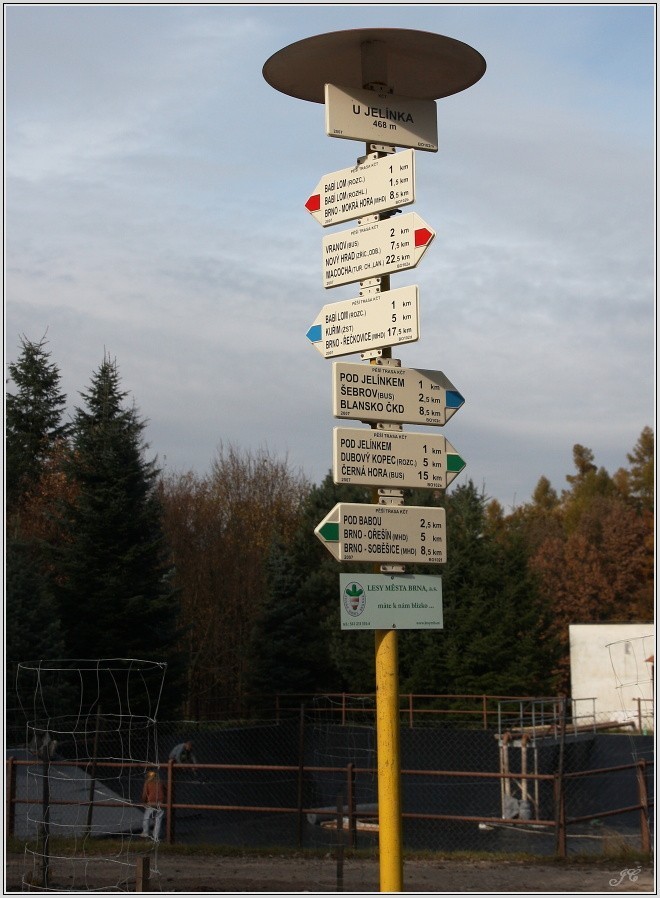 Rozcestí (foto 1) leží v těsné blízkosti lesních školek Lesů města Brno., a.s. (foto 2). Procházejí zde turisticky atraktivní trasy: