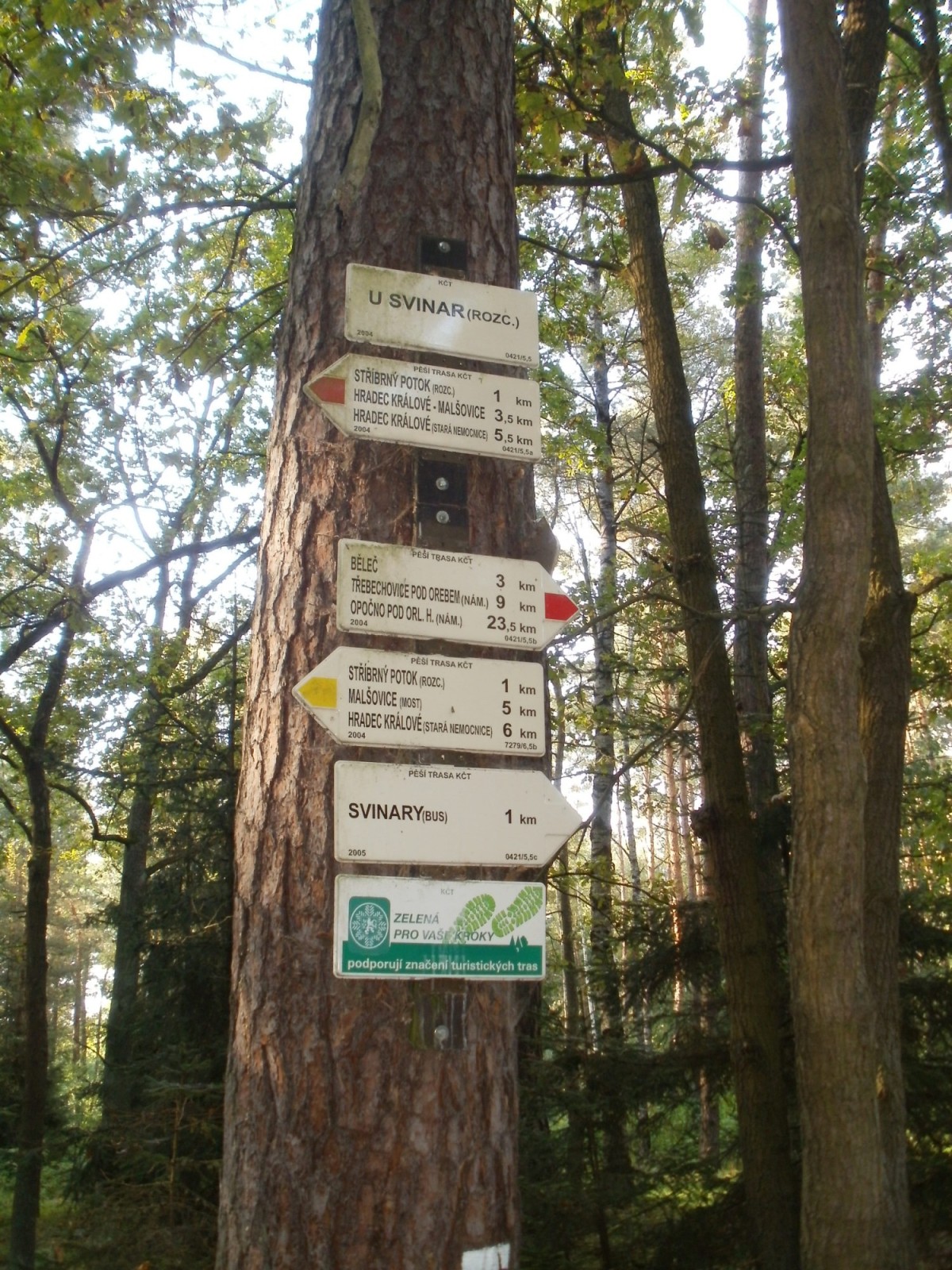 Rozcestí u Svinar nedaleko stříbrného rybníku ukazuje cestu po červené značce ve směru Hradec Králové - Třebechovice pod Orebem a po žluté ve směru HK - rozcestí U Křivé lípy. V místě je možnost pození a informační tabule s popisem lokality.